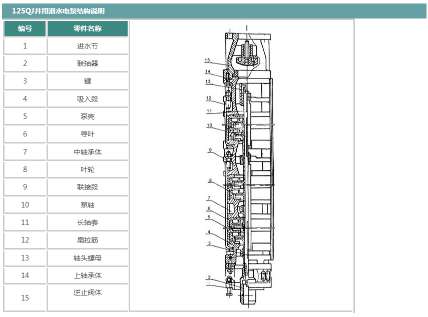 125QJ井(jǐng)用潛水(shuǐ)電泵性(xìng)能參數(shu)