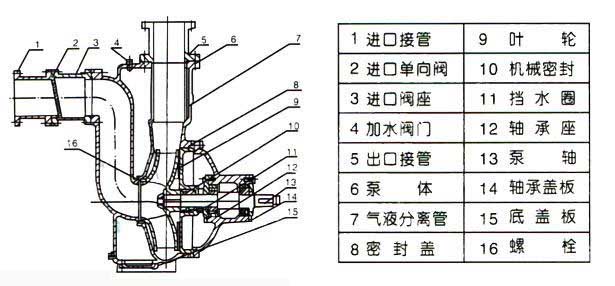 ZW型自吸(xi)式無堵塞(sai)排污泵結(jié)構圖: