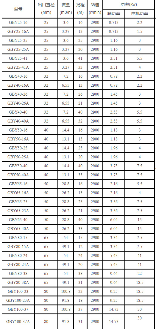GBY濃硫酸(suan)液下泵性能(néng)參數表